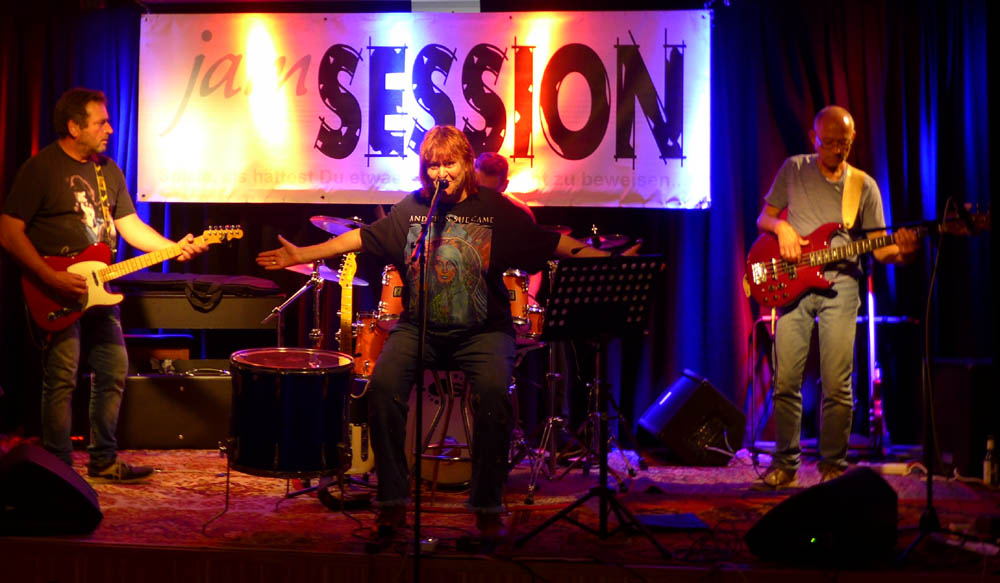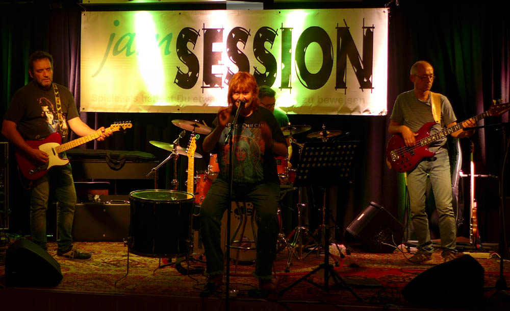 So auch mit Wolfgangs jamSESSION. Wenn man als Gast nicht nur seine Ohren benutzt sondern auch das ein oder andere Auge, wird auffallen, dass die allermeisten Anwesenden einfach nicht still stehen können. Die Rhythmen gehen geradeaus "ins Blut". Für Musikbegeisterte (mit dem Geschmackssinn für Rock und Blues) gibt es kaum noch ein Halten. Der Körper macht sich selbständig. Ein untrügliches Zeichen, dass man sich hier daheim fühlt.