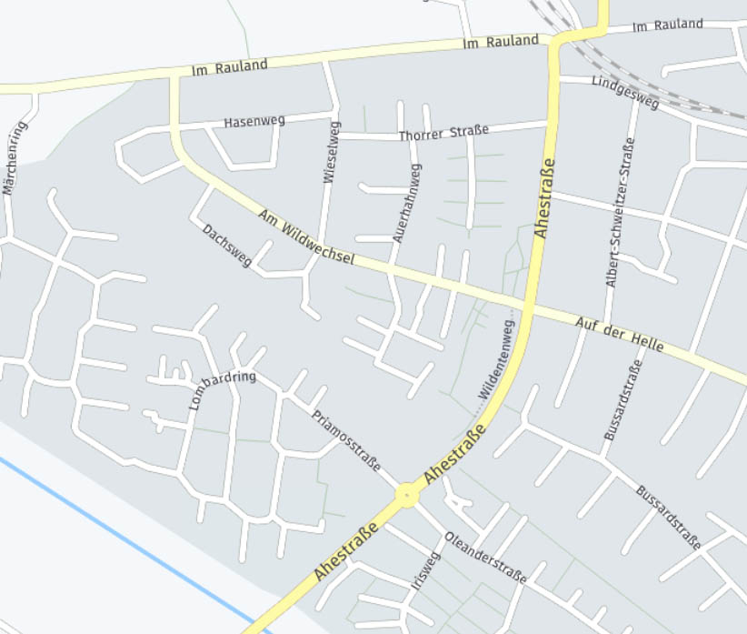 - Neubau der Nebenanlagen im Abschnitt zwischen dem (geplanten) Kreisverkehr Ahestraße / Am Wildwechsel / Auf der Helle und der Straße Im Rauland